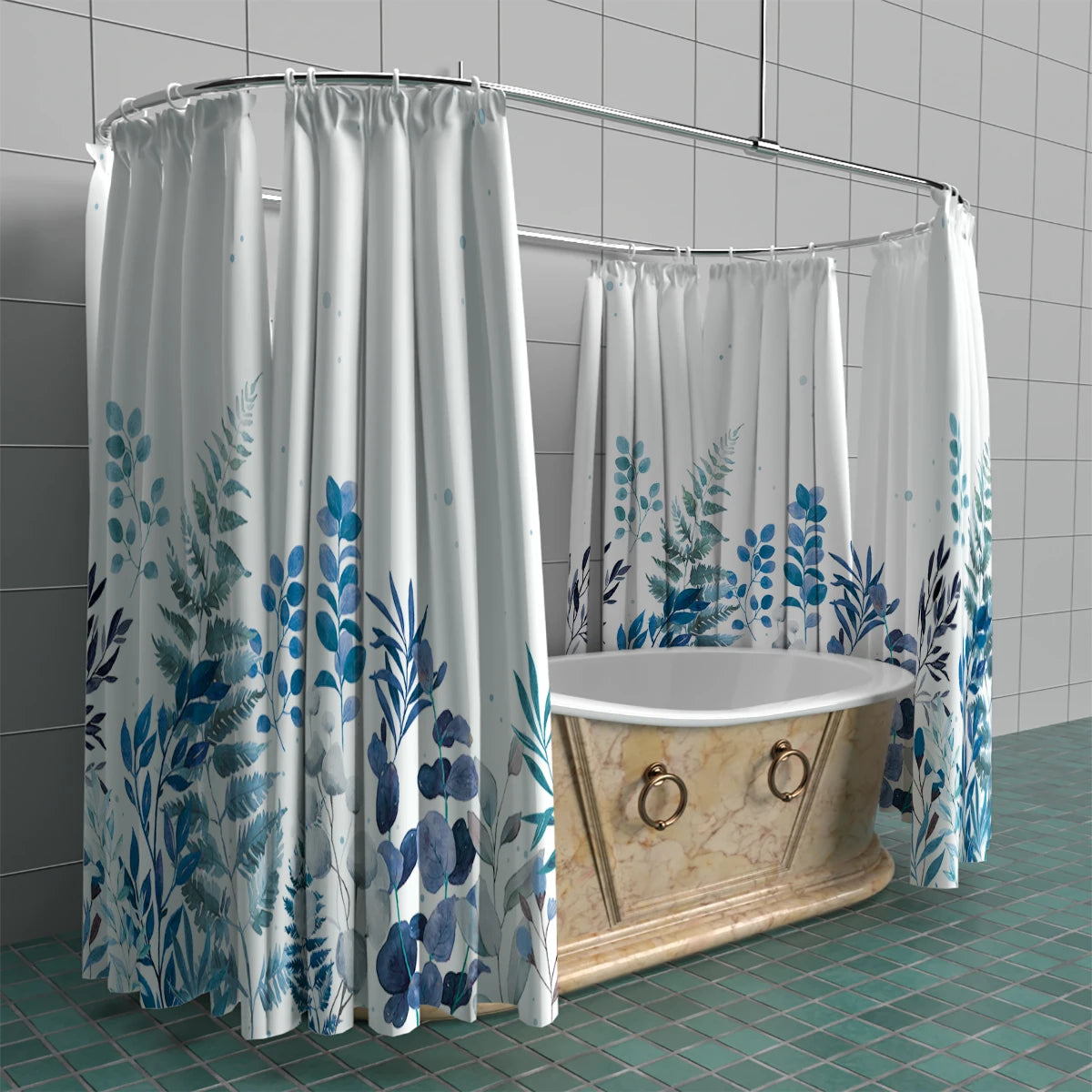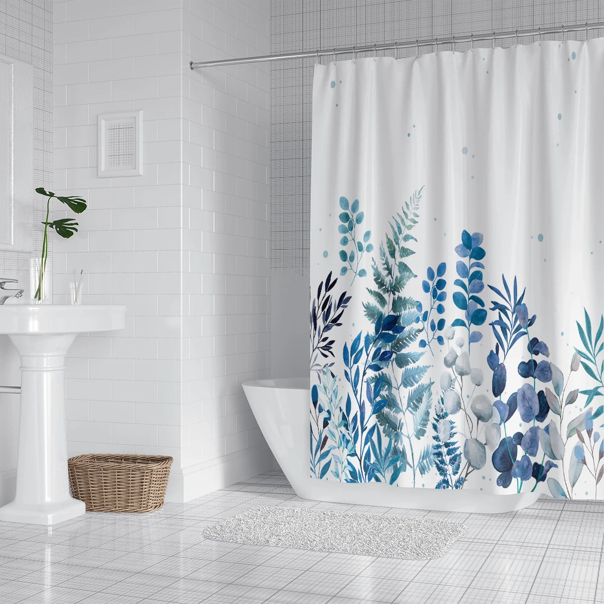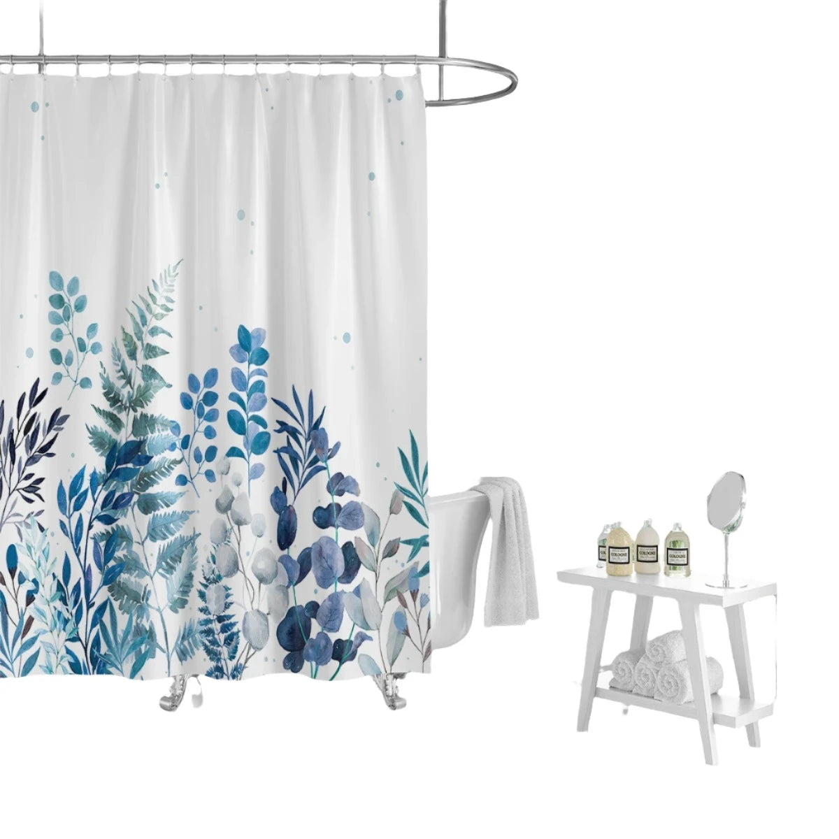 הוסיפו נגיעה ייחודית של צבע ורעננות לחדר האמבטיה שלכם עם וילון מעוצב בעל דפוס פרחוני כחול מרהיב.