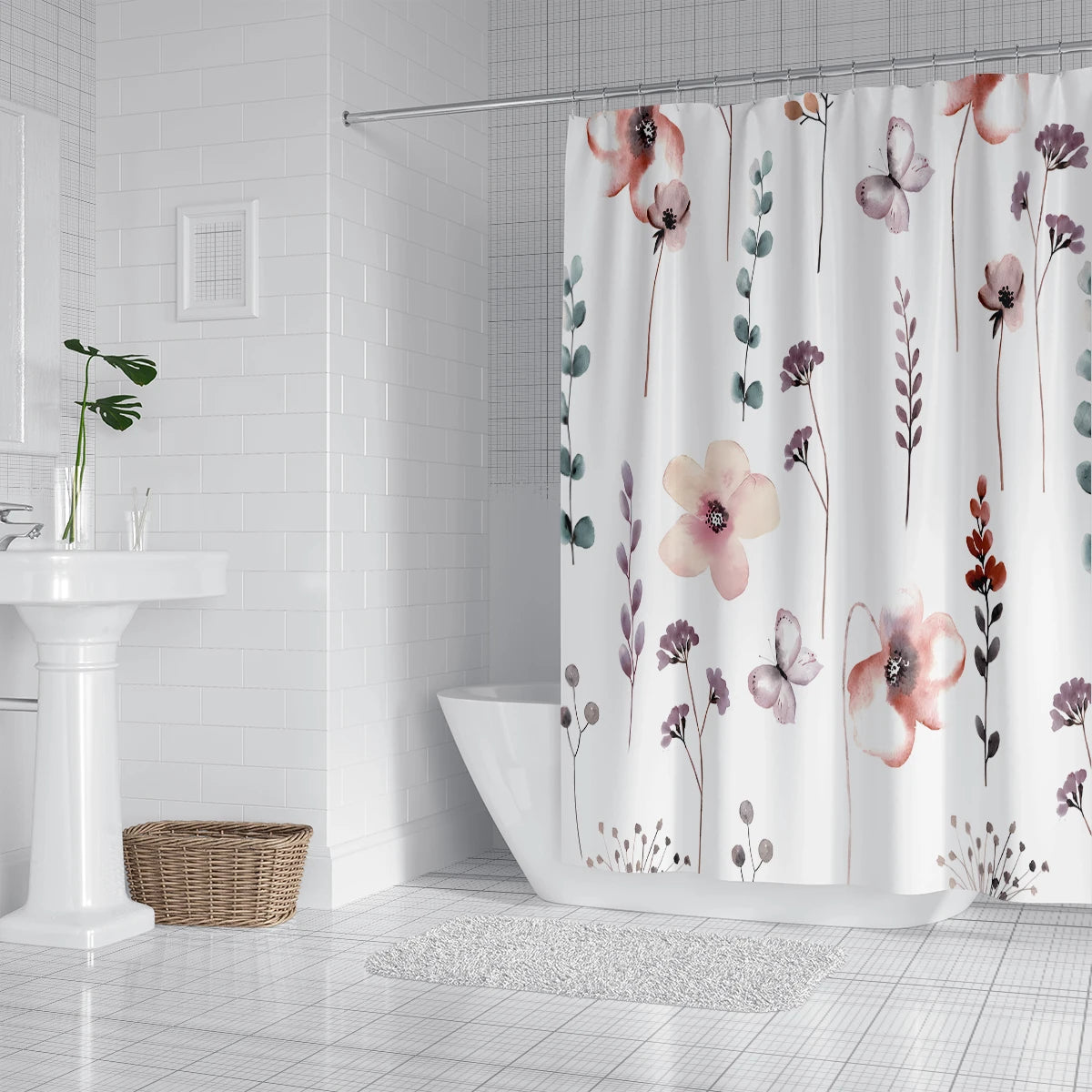 וילון אמבטיה בעיצוב קלאסי עם דפוס פרחים עדין