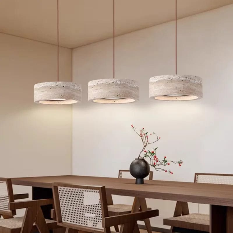 מנורת תלייה ייחודית בסגנון יפני Wabi-Sabi, עשויה מאבן שיש טבעי (טרוורטין) בגוון צהבהב חמים. עיצוב שמשלב פשטות טבעית עם אלגנטיות מחוספסת – מושלם מעל אי מטבח, פינת אוכל או לצד המיטה.