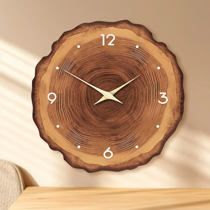 שעון קיר דקורטיבי שמשלב פשטות, אלגנטיות ועיצוב טבעי בהשראת טבעות העץ.